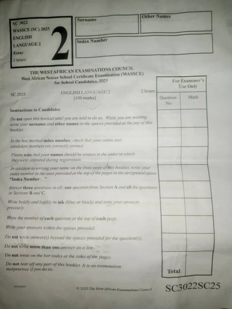 Access the complete WAEC English Language Questions and Answers for 2025 here. This page will be updated with verified solutions to both the objective (OBJ) and essay sections before the exam begins. Be sure to refresh this page regularly to get the latest answers and stay ahead.