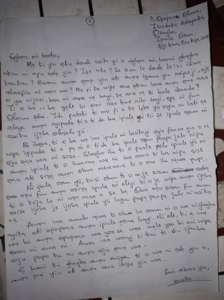 I still remembered the warning of my mother when she was about to leave me after assisting me in carrying my load into my hostel. Shade, you must not forget the home you came from. You must not disappoint your father and me. Be guided by all the religions teachings you have been taught both at home and in the church.” After saying these words, my mother with tears cascading down her cheeks, reluctantly entered into the car that brought me and the driver drove off.