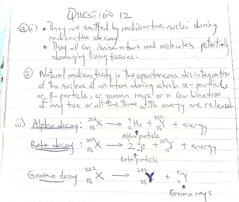 (9d) (i) Bulk modulus Bulk modulus is a measure of a material’s resistance to compression under uniform pressure. (ii) Energy gained by the wire Given: Mass (m) = 2.5g = 0.0025kg Extension (x) = 2cm = 0.02m g = 10m/s² Force (F) = mg = 0.0025 × 10 = 0.025N Energy gained (E) = (1/2)Fx = (1/2) × 0.025 × 0.02 = 2.5 × 10⁻⁴ J