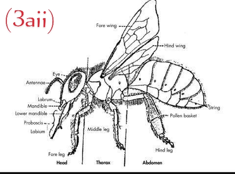 (1biii) Specimen; A; (i)Housefly have six legs (like all insects) (ii)Housefly have a distinct head, thorax, and abdomen