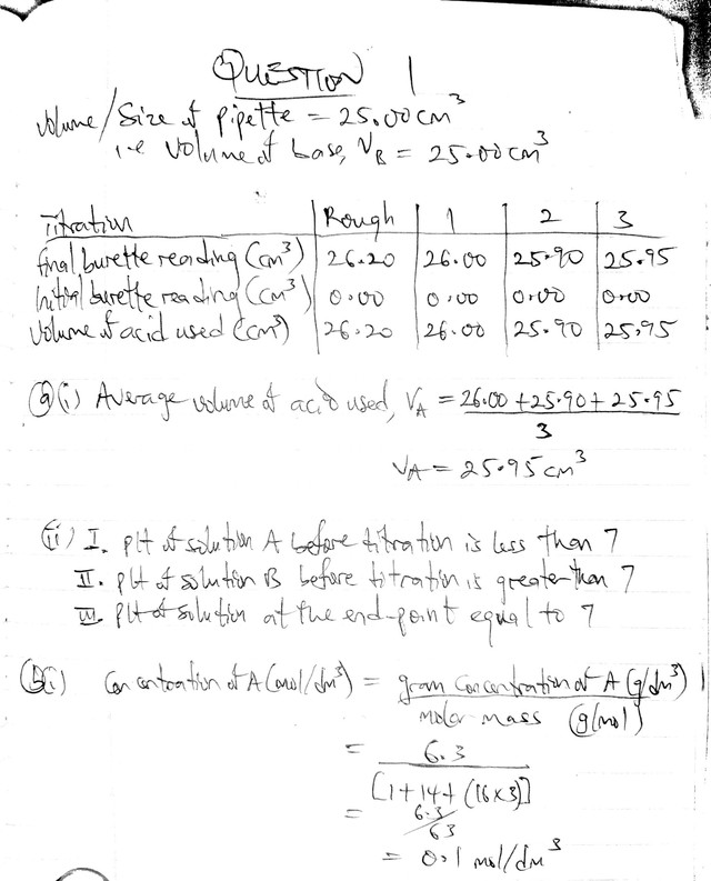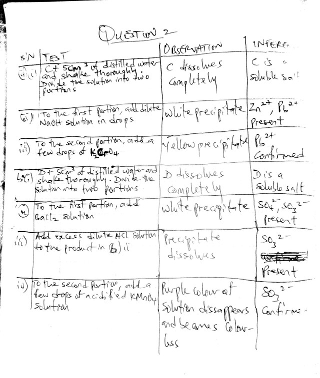 Neco Chemistry Practical Answers 2025